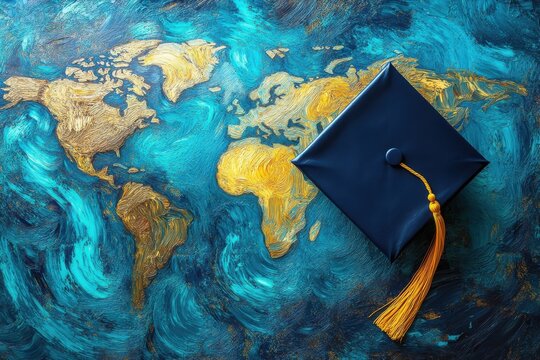 Flat vector illustration of an education concept with books, laptop, graphs, and creative elements. Symbolizing learning, knowledge growth, and academic success.