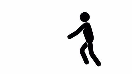 Pictogram man walking, stumbling and falling. Animation with alpha channel. Stickman falling