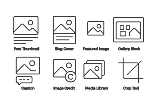 A collection of colorful cooking icons and kitchen utensils set in modern outline graphic style, featuring essential culinary arts equipment like chef hat, mixing bowl, rolling pin, frying pan, measur
