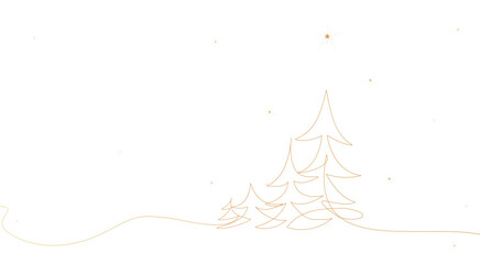 The Christmas tree is decorated with stars and snowflakes. Hand drawing in the style of one continuous line. For print background, holiday decor. Vector