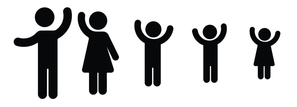 Flat design family symbol icon featuring stylised parents and children figures in a clean minimal, for, logo, social, vector illustration.