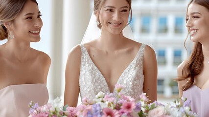 Braut mit elegantem Brautstrauß aus Rosen bei moderner Hochzeit
