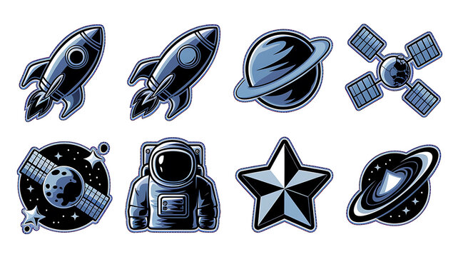 Space themed vector graphics stylized rocket astronaut planets and satellite Stylish modern design