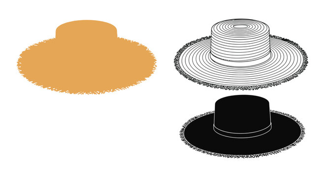 Elegant collection of illustrated women’s hats with floral, striped, woven and classic designs displayed on stylish female silhouettes for fashion and accessories
