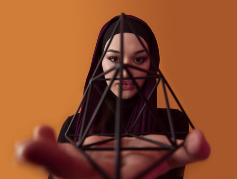 Artistic recognition symbol, geometric abstraction, radiant colors, layered textures, motion blur effect, stylish and elegant composition