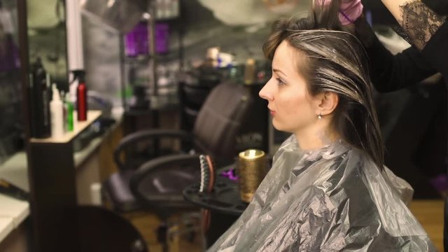 Woman having her hair styled by hairdresser in a salon, skilled hairdresser in bustling beauty salon environment, where various transformations occur, stylist does makeup, four hands work