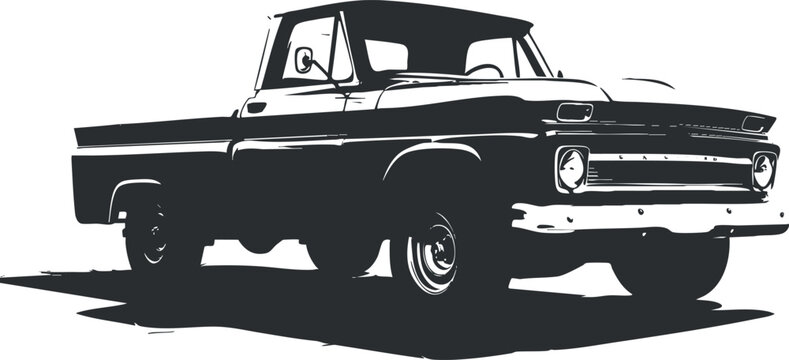 Black and white illustration of a vintage pickup truck in silhouette style.