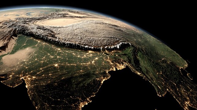 Digital Network Connectivity Spanning Indian subcontinent with Glowing Lights and Data Streams Emerging from Earth at Night