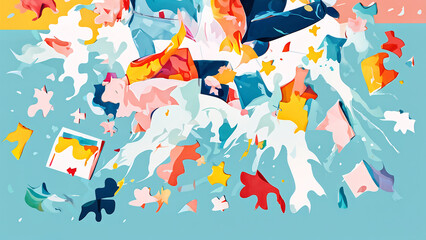 A visually appealing and minimalistic background, vibrant and dynamic abstract background with a riot of colors and shapes. showcasing a balanced arrangement of elements and a subdued color palette