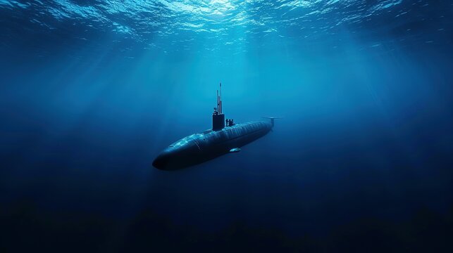 A lone submarine ventures into the blue abyss, a symbol of marine discovery