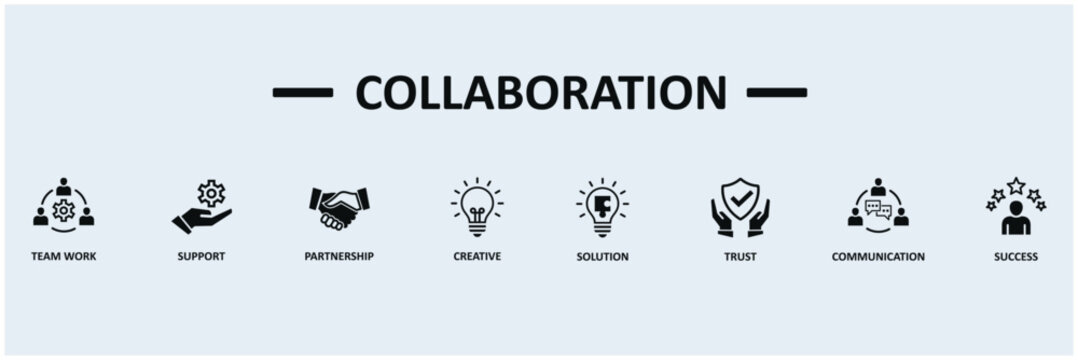 Collaboration banner web icon vector illustration concept with icon of team work, support, patnership, creative, solution, trust, communication, succes