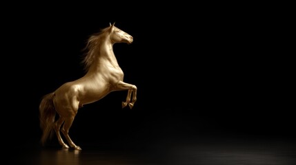 stunning golden horse rearing gracefully on dark reflective background, symbol of power luxury strength success and elegance, artistic decorative concept