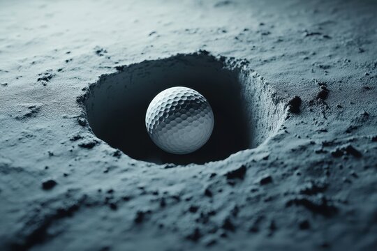 Close-up golf ball highlighting elegance of successful putt