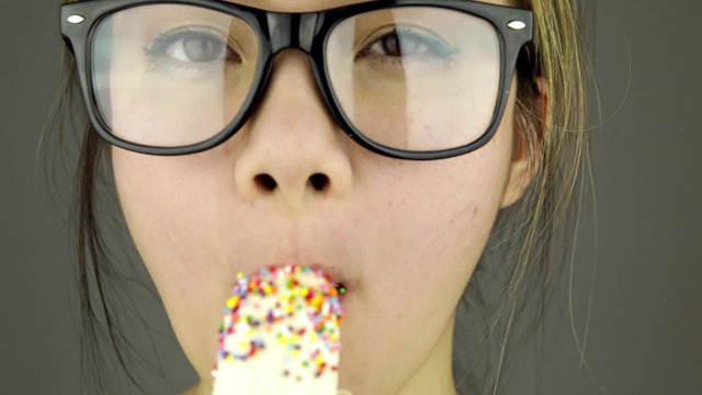 Small asian girl suck ice cream