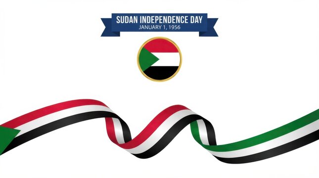 sudan independence day background with round emblem of the national flag on white space bold typography with the text clean modern design copy space