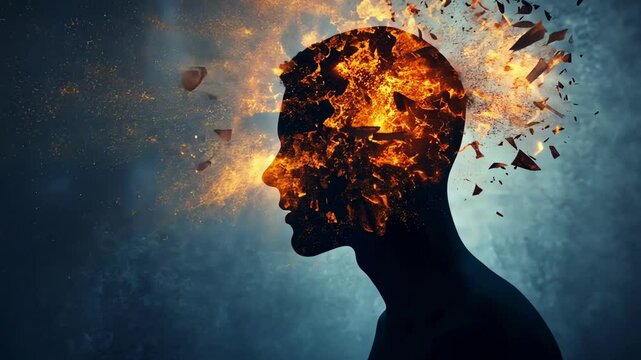 A silhouette of a man crouched down with his head in his hands against a moody, blue-toned background, representing despair and mental struggle.