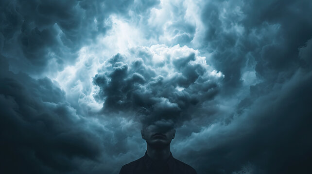 Depression's Grip: A dark and heavy cloud looming over a person, representing the suffocating grip of depression and its impact on mental well-being