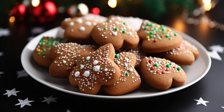 A plate of low carb gingerbread cookies, decorated with sugarfree icing and festive sprinkles, a guiltfree holiday treat for those following a keto diet.