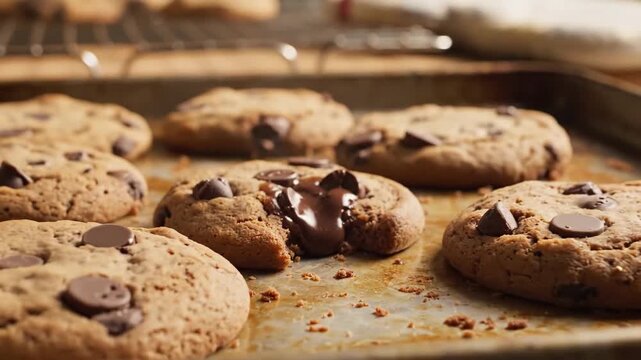 Warm, Freshly Baked Chocolate Chip Cookies Fresh from the Oven with Gooey Molten Chocolate Centers