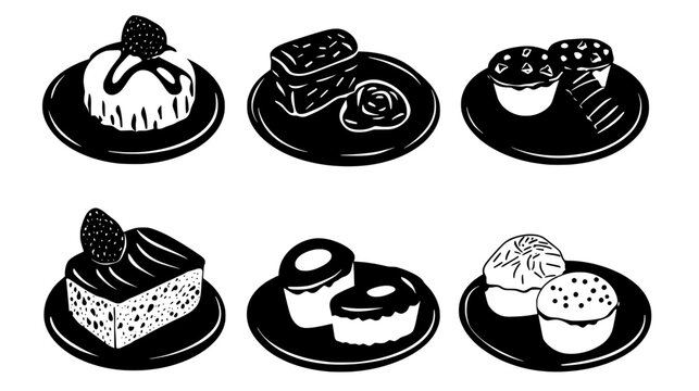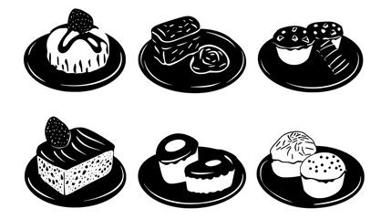 Selection of sweet confections on a plate, featuring sugary delights, vector illustration art