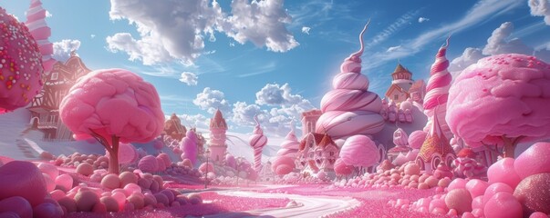 A whimsical candy land with sugary delights. Realistic.