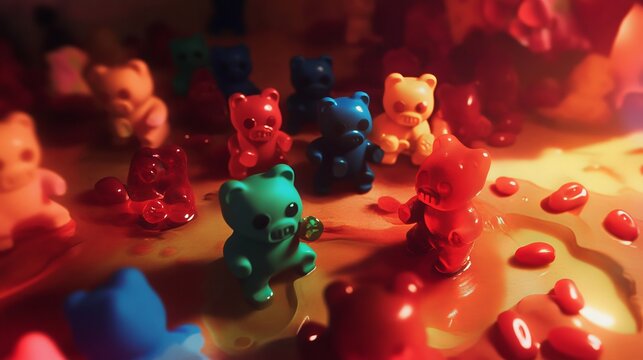 Assortment of colorful candies and sweets exploding in a burst of sugary delight