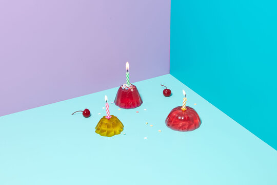 Gelatin desserts with burning candles