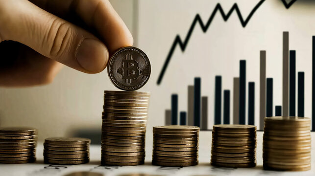 A glass jar is filled with shiny coins, clearly labeled as investment, reflecting city lights at night. The urban background suggests a financial theme, emphasizing wealth accumulation