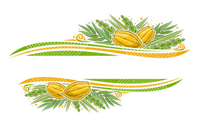 Vector border for Sukkot with blank copy space for congratulation text, decorative greeting card with illustration of traditional four species leaves for sukkot judaic celebration on white background