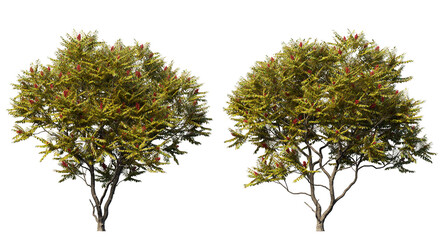 Staghorn sumac trees isolated, medium orange leaf trees clipping path
