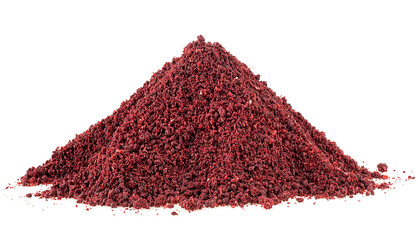 sumac powder isolated, red sumach ground seasoning, dry sumak