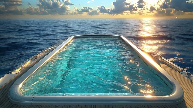 Refreshing summer cocktail on a sunbed by the pool with vibrant turquoise water and a tranquil beach atmosphere. Relax and unwind in paradise.