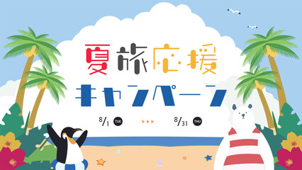 3D Beach Podium Display with Summer Banner – Professional Marketing Platform with Tropical Ocean Background for Summer Internship Recruitment and Job Search Campaigns