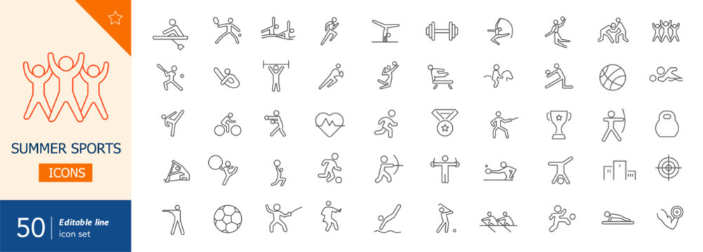 Summer sports icons set, vector pictograms for web and print