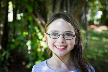 Young girl wearing glasses in dappled light