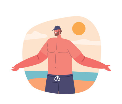 Man With Sunburned Hands, Red And Peeling From Prolonged Sun Exposure. A Painful Reminder Of The Importance