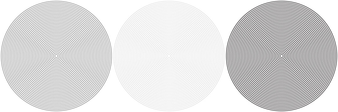 Radial circles design element. Expanding, converging circle lines from the center, epicenter.Radial, circular lines, spokes. Radiating lines, stripes. Concentric burst.
