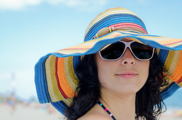 Pretty woman wearing a colourful sunhat