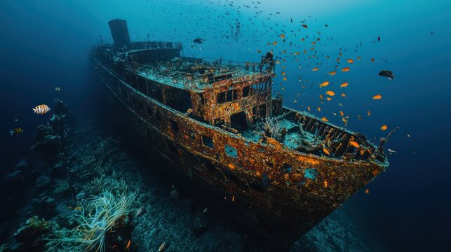 sea shipwreck render d ship undersea dolphin ocean nautical tall water maritime mystery mysterious skittish wreckage wreck ruin three-dimensional sunk sunken
