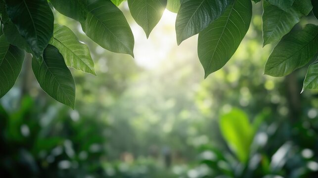 Sunlight Filtering Through Green Leaves in a Lush Forest Setting