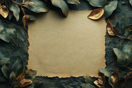 Sheet of paper surrounded by leaves in a forest clearing, sunlight filtering through the trees, creating a serene and peaceful scene.