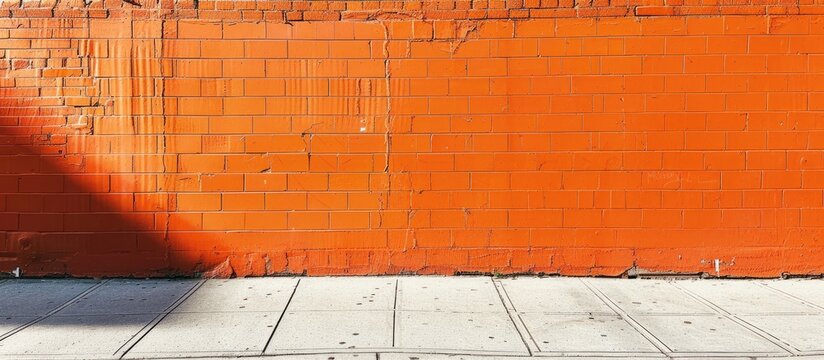A vibrant orange brick wall stands against a sunny paved sidewalk creating a picturesque architectural backdrop with a copy space image