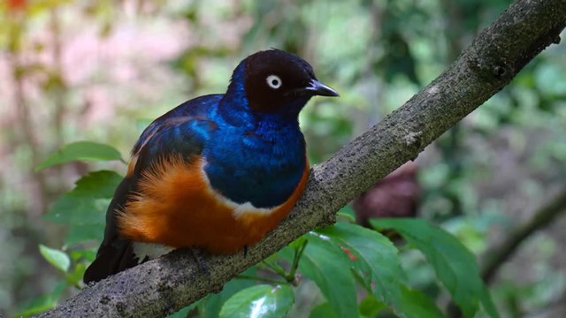 Solitary Superb Starling on a Tree Branch. UHD 4k video