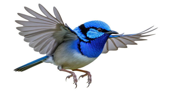 An adult male Superb Fairywren (Malurus cyaneus) in its rich blue and black breeding plumage with a duller coloured female perched on a branch