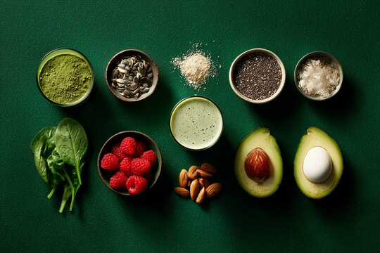 Vibrant assortment of healthy superfoods promotes wellness and energy for active lifestyle
