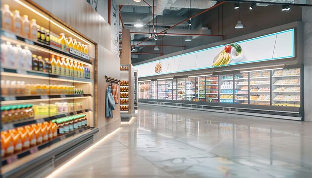 Cold and Ready, The Well Stocked Front View of a Supermarket Refrigerator, Generative AI