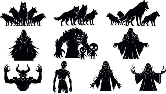Witchcraft hand-drawn vector illustrations set. Halloween sketches. Vintage apothecary, occultism, alchemy design elements. NOT AI generated