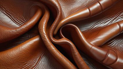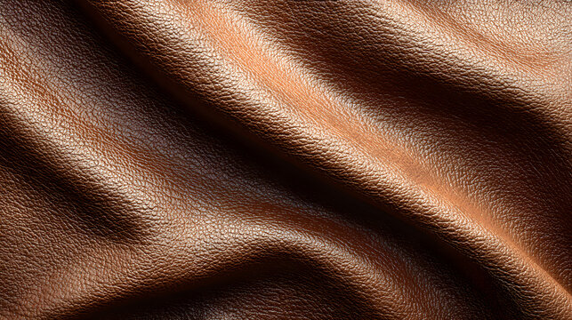 Close up of luxurious brown leather texture.  Draped folds showcase the material's supple quality and rich color.
