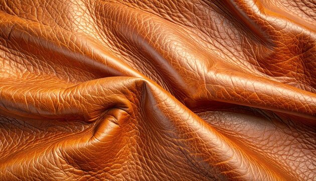 Detailed close-up view of supple brown leather featuring intricate surface texture, grain, and folds creating an inviting and luxurious look.