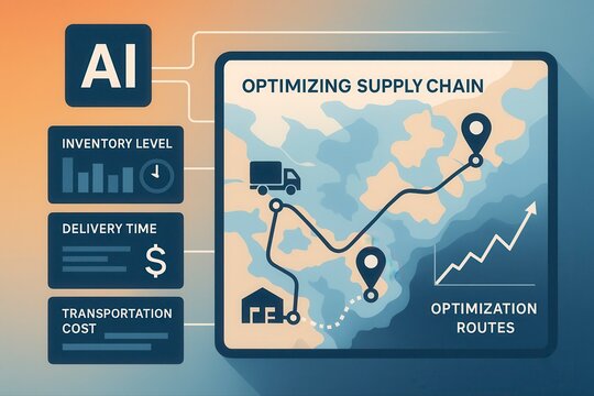AI in supply chain, business value chain management concept. More accurate, reliable, cost-effective. Planning with real-time visibility, control over a fully optimized supply chain. Digital twin tech